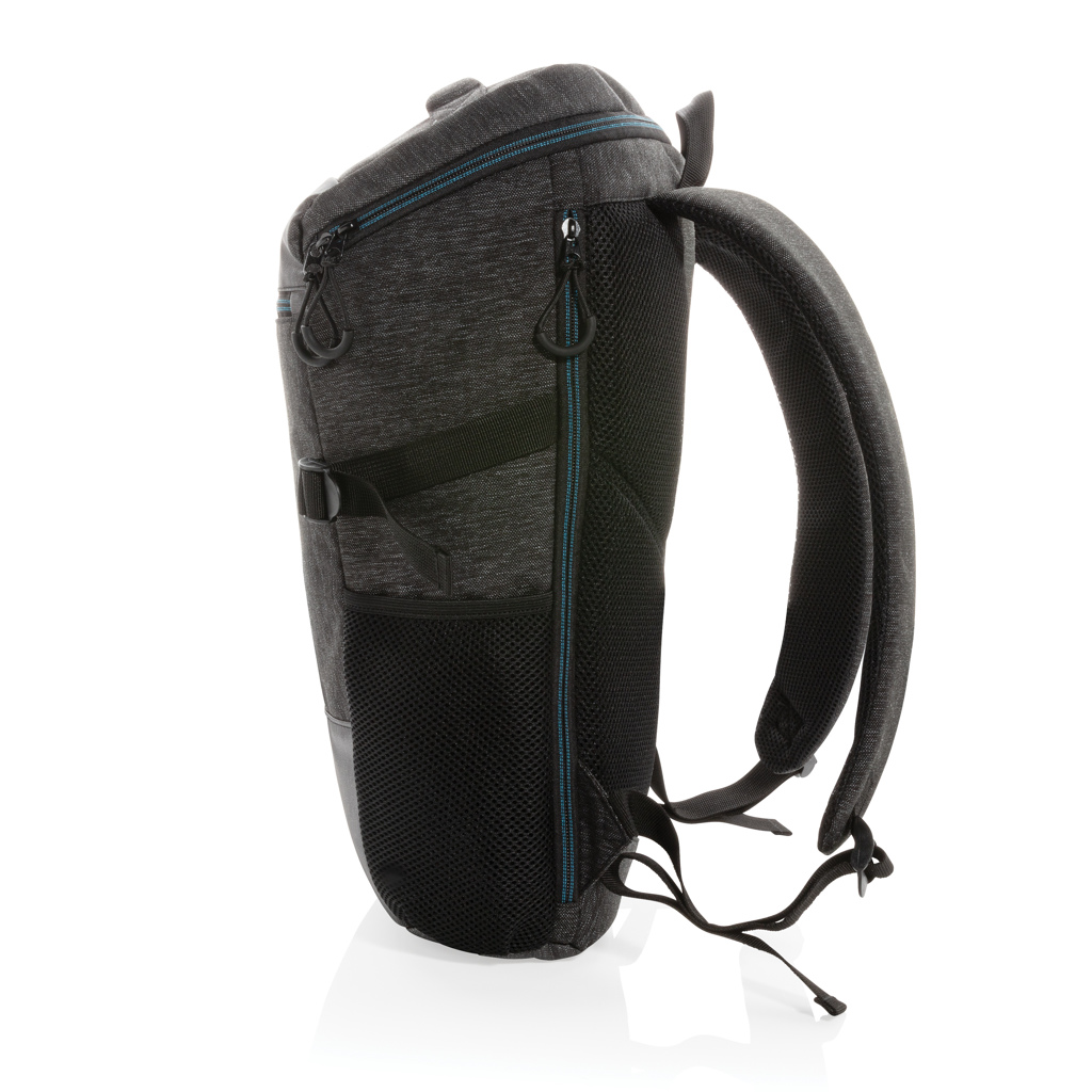 This 900D easy access laptop backpack has all the space you’ll need in a day bag or carry-on. The roomy main compartment has a 15.6″ laptop pocket and a small pocket to hold quick grab items. The big zipper opening makes it easy to see what’s in your backpack at a glance. PVC free.