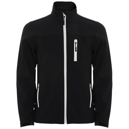 2-layer softshell. Inverted sealed effect zip with matching chin protector and zipper puller. Three zip pockets with matching puller. Velcro fasteners in cuffs. Adjustable bottom hem with elastic drawcord and stoppers. 1000 mm water resistant. Wind-proof fabric. The model is 129 cm and is wearing size 5/6.