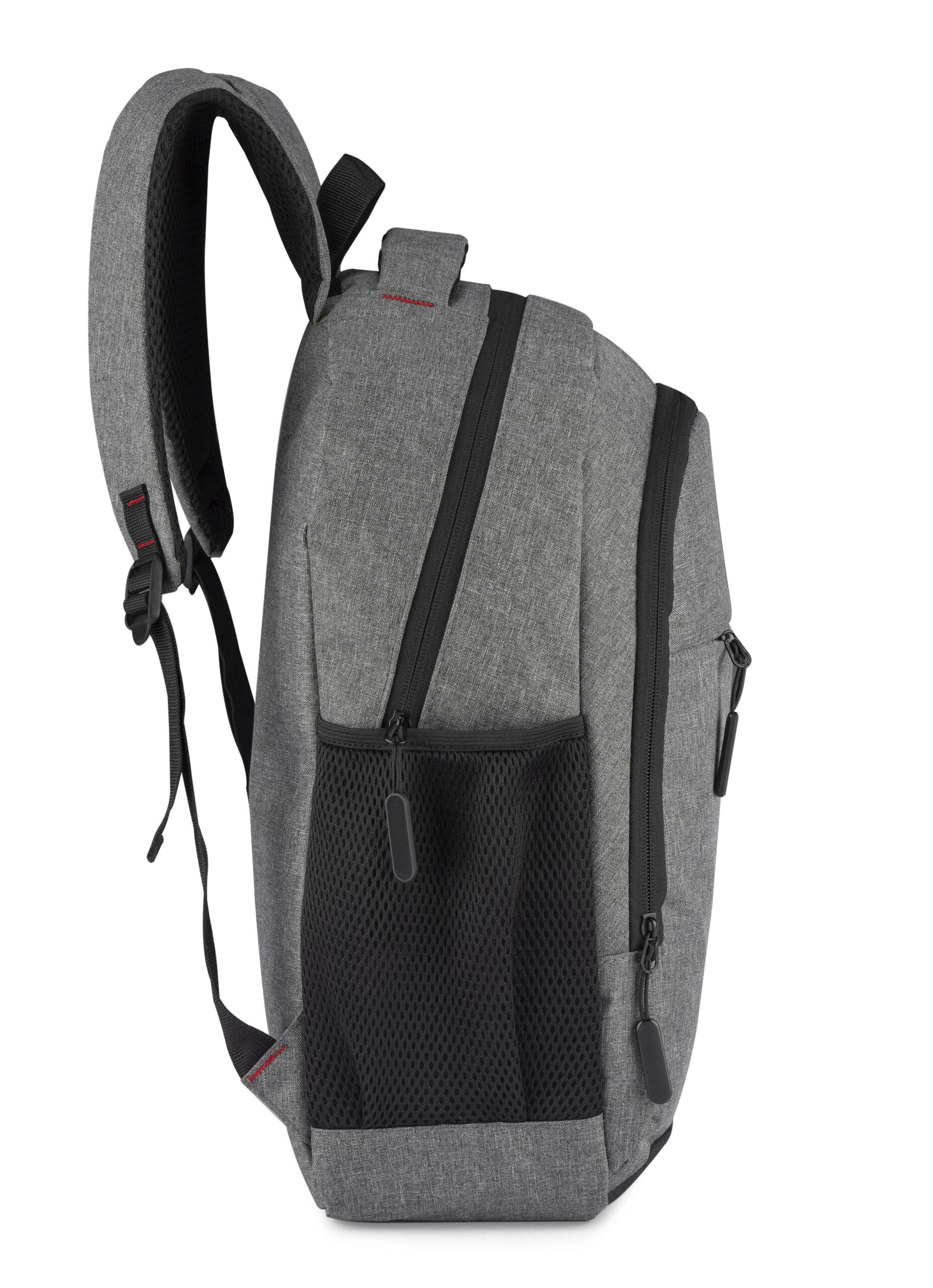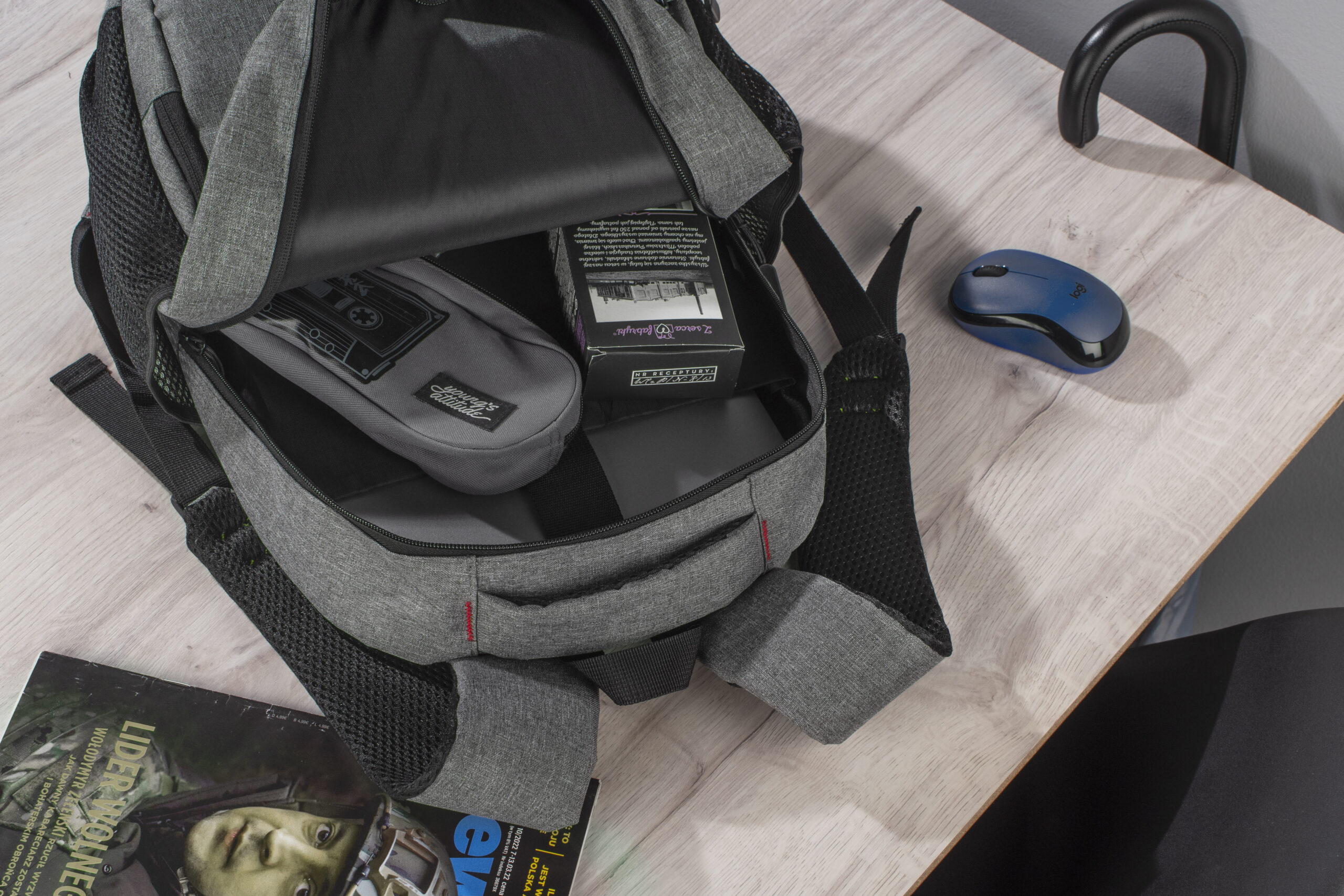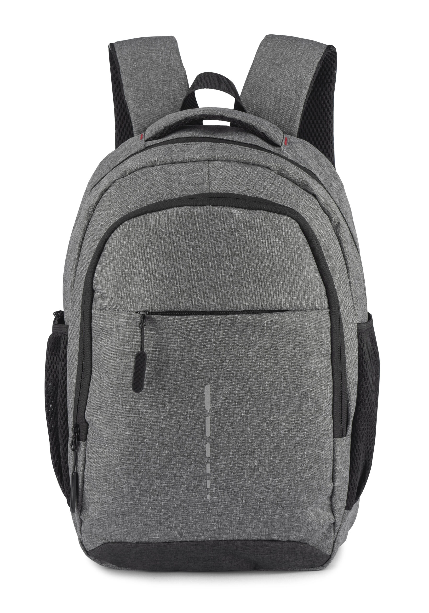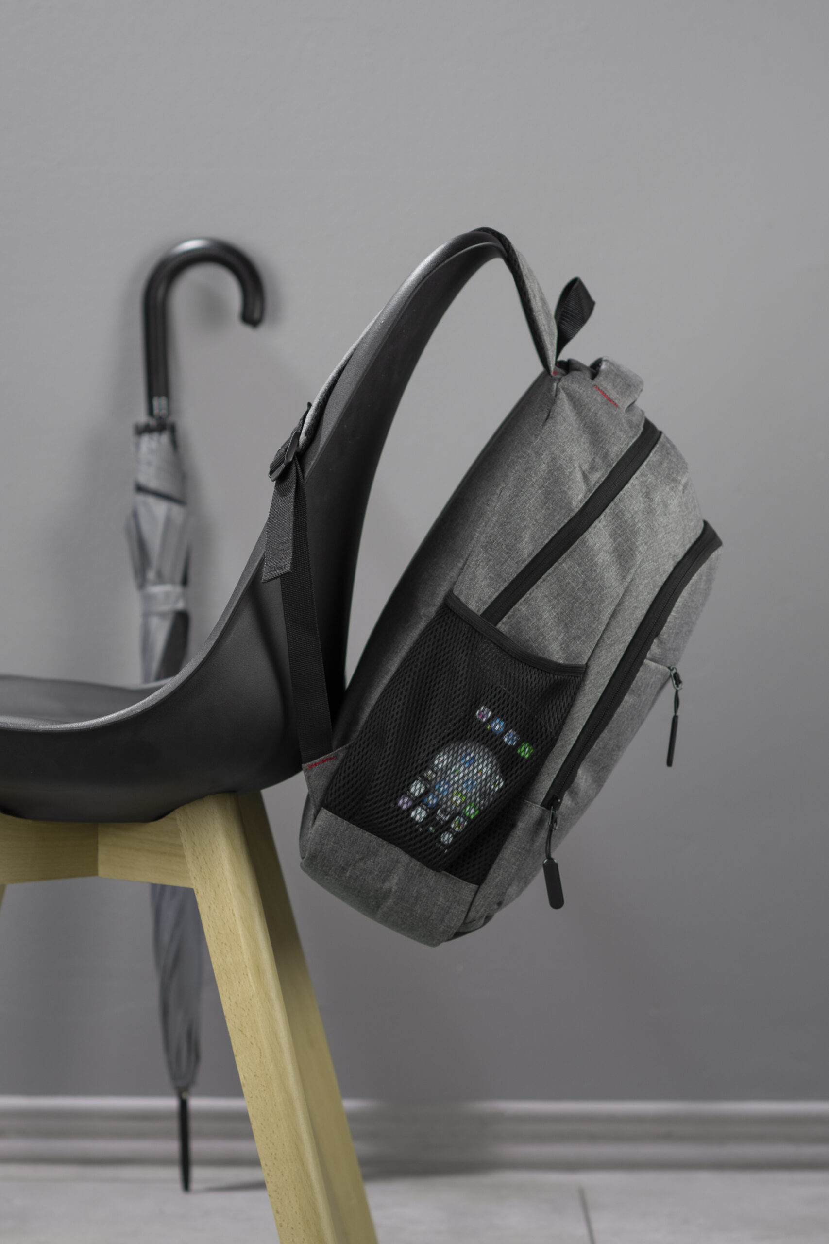 MARSH backpack made of strong 600D polyester has a roomy main compartment with a narrow compartment fastened with a Velcro strap. It will fit a 15-inch laptop. On the front, there is a smaller zipped compartment and a large zipped pocket. There are mesh drink pockets on both sides. Stiffened back and suspenders finished with a soft mesh will improve the comfort of use. At the top, a comfortable and wide handle to grip. Black lining inside.