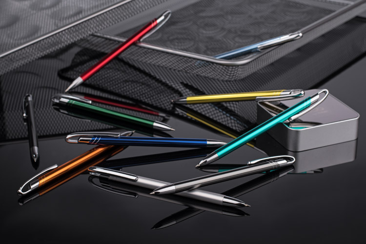 Thin and slick metal pen with metallic finish. Clip and tips in silver chrome finish. AVALO stands out from other similar pens by the original clip design. The barrel is decorated with two slanted silver stripes. Blue 0.7 mm-thick refill.