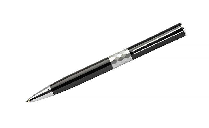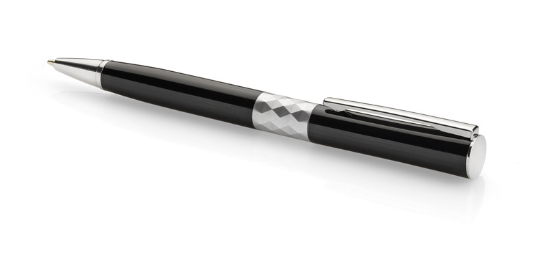 A modern ball pen design with the newest trends in mind. In the middle of the ball pens’ body there is a decorative ring that shape resembles a cristal, it also gives this pen quite an elegant look. Marking can be made on the body of the product.