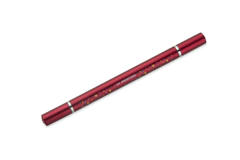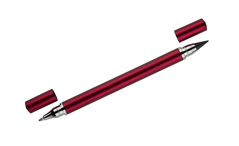The TWINO 2-in-1 ballpoint pen combines a classic ballpoint pen and a fountain pencil in one body, creating a practical tool for everyday use. On one side there is a ballpoint pen with a stopper and a 1.0 mm writing thickness refill, on the other side is a fountain pencil that does not need sharpening. The barrel is made of plastic with a satin finish and decorated with silver rings to emphasise its refined appearance. TWINO is lightweight, handy and comfortable, ideal for the office, school or as a functional advertising gadget.