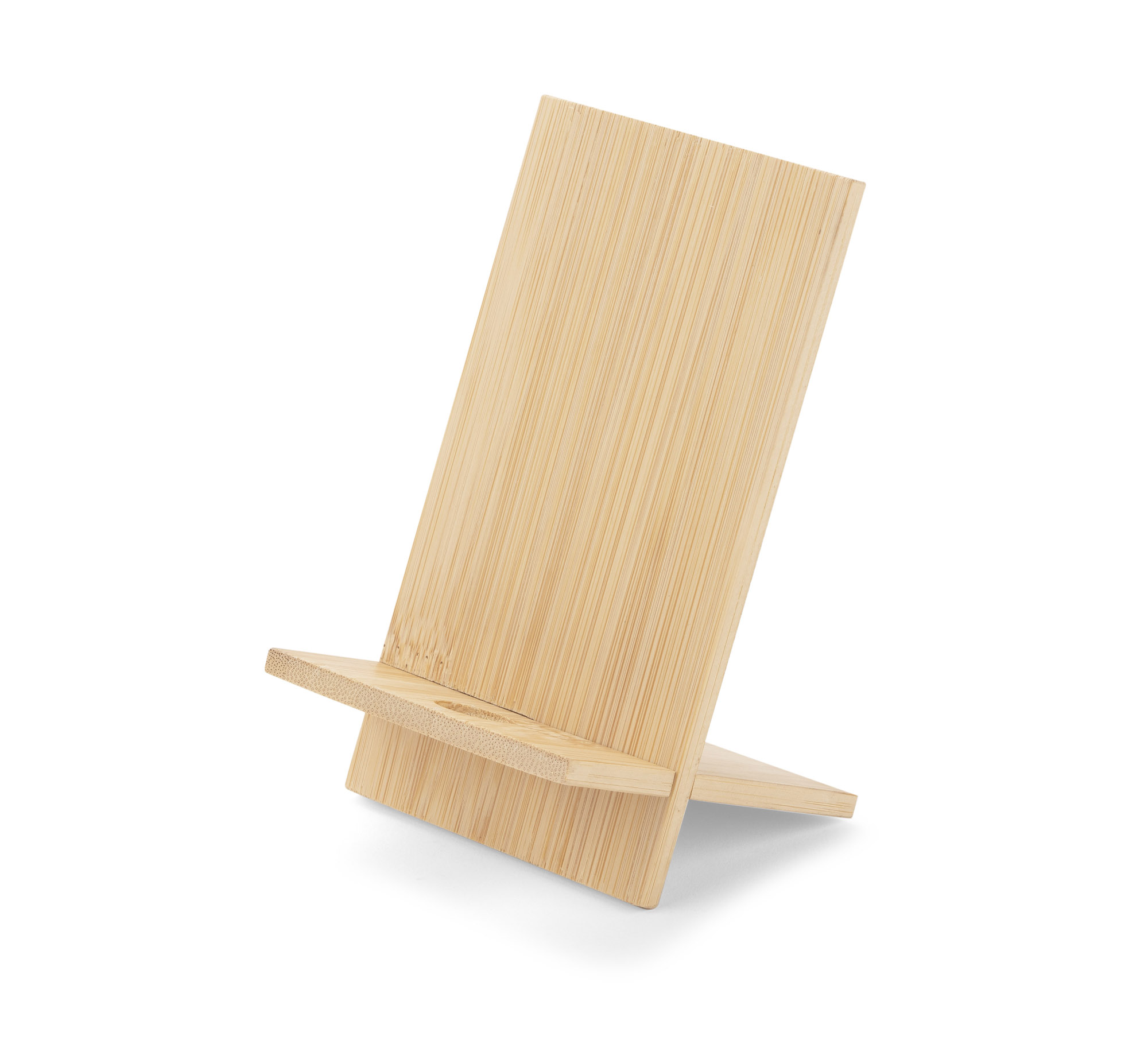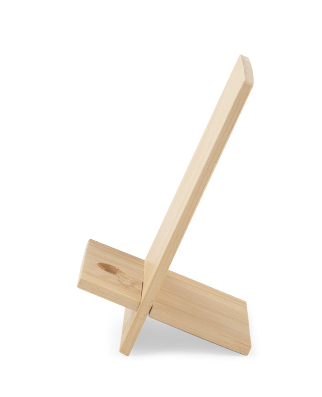RAGA is a practical phone stand made entirely of ecological material – natural bamboo. Provides a stable base for phones and other mobile devices. The cable hole will allow you to easily charge the device while using the stand. A product for self-assembly by conecting two bamboo tiles. The stand is packed in a brown paper envelope with an infographic – assembly instructions.