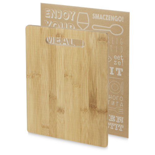 Cutting board made of bamboo that is sourced and produced following sustainable standards. The board can also be used for serving tapas.