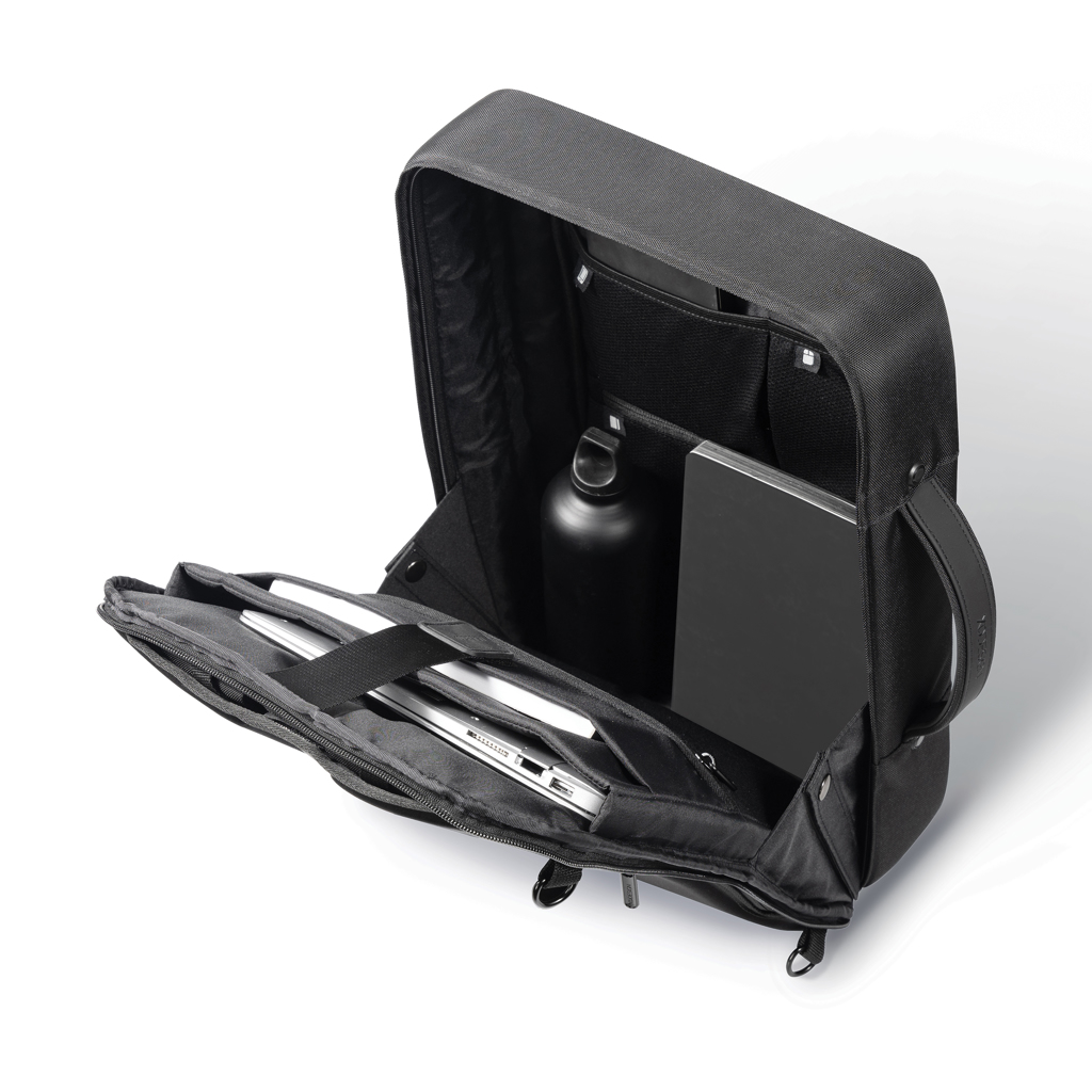 Keep your belongings safe and make your commute more stylish with the new Bobby Bizz 2.0. Ready for any business occasion, you can convert this backpack into a briefcase in a matter of seconds, just by putting the shoulder straps in the back pocket. To keep you and your belongings safe, the iconic Bobby anti-theft design has no front access, hidden zippers, and a hidden RFID-protected pocket. It is enhanced with cut-resistant material and a built-in metal frame. The improved EVA back panel provides additional comfort. You can also securely lock your Bobby Bizz 2.0 to any fixed object with the integrated zinc alloy lock in the right strap. In the backpack interior, there are padded compartments for a 16” laptop, a tablet up to 12.9”, and all your professional gear. Now made from R-pet fabric with the AWARE™ tracer. With AWARE™, the use of genuine recycled fabric is guaranteed. 33% recycled content.
