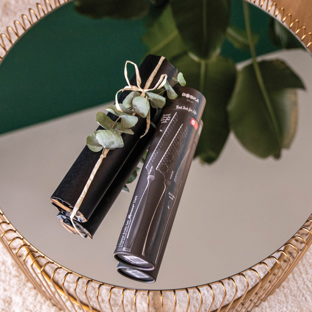 From soft Brie to hard Parmesan, the Cheese Knife Set Monaco+ Black from BOSKA – a B Corporation certified company – offers the perfect cutting solution for every type of cheese. These unique stainless steel, non-stick knives, complete with a genuine leather sleeve, make an ideal and stylish gift for true cheese lovers and cooking enthusiasts. This set is refrigerator-safe, handwash only, and backed by a 10-year guarantee.