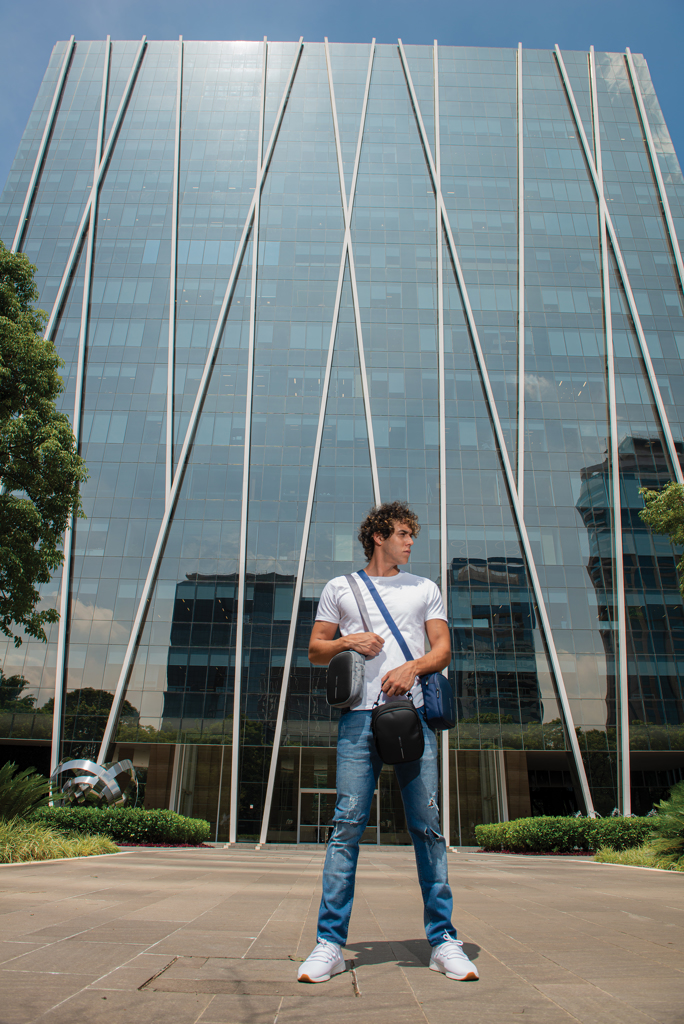 The Boxy Sling is a versatile cross body bag, designed to carry everyday essentials. The pack can be worn around the neck, over the shoulder or around the waist. It has enough capacity to hold a cellphone, wallet or purse, passport, notebook and various other small items. The hidden rear pocket is perfect for discreetly storing cash, cards or other valuable items. The Boxy Sling has a unique hidden water bottle pocket that can stay tucked away when not in use. Made from R-pet fabric with the AWARE™ tracer. With AWARE™, the use of genuine recycled fabric is guaranteed. 27% recycled content.