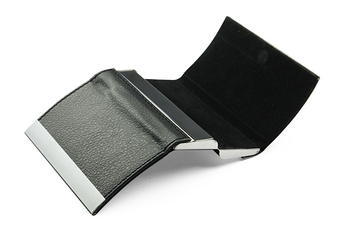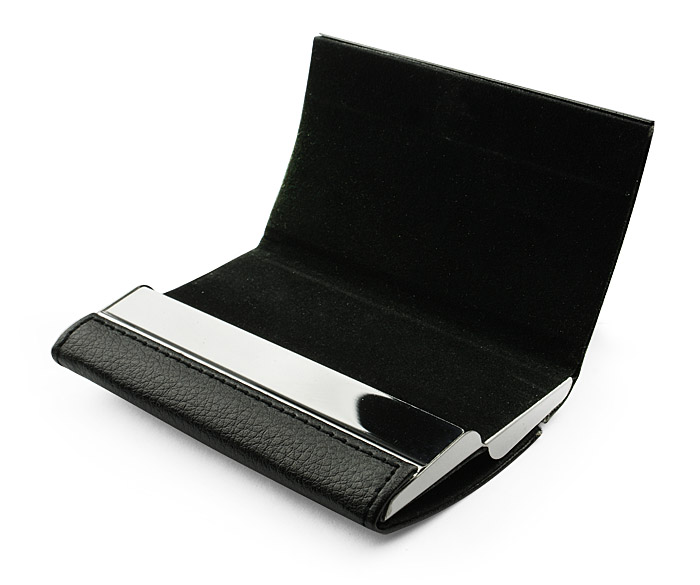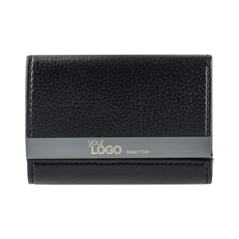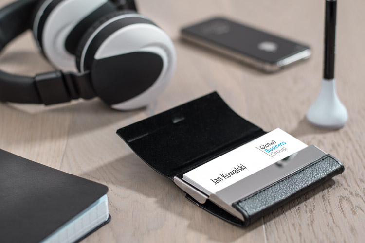 Extremely practical business card holder made of leather-like material (PU), with which you can store both your and your clients’ business cards. All you have to do is open the right compartment. The business card holder will hold 20 business cards (10 on each side). We will engrave your logo on the tin.