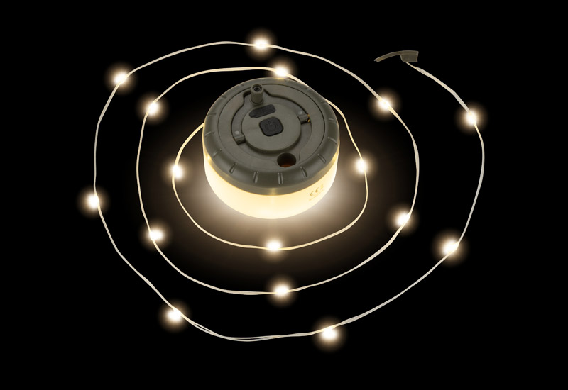 The VIBER camping light is a practical 2-in-1 solution for both travelling and camping. Equipped with an expandable string of LED lights, it allows you to illuminate a larger space, creating a comfortable environment after dark. Two hooks – one at the bottom and one at the top – allow it to be conveniently hung in various locations. The light glows for up to 4 hours on a single charge, and with USB-C power, it’s easy to charge in any conditions. Its compact form and functionality make the VIBER a reliable outdoor gadget that can also be branded with your company logo.