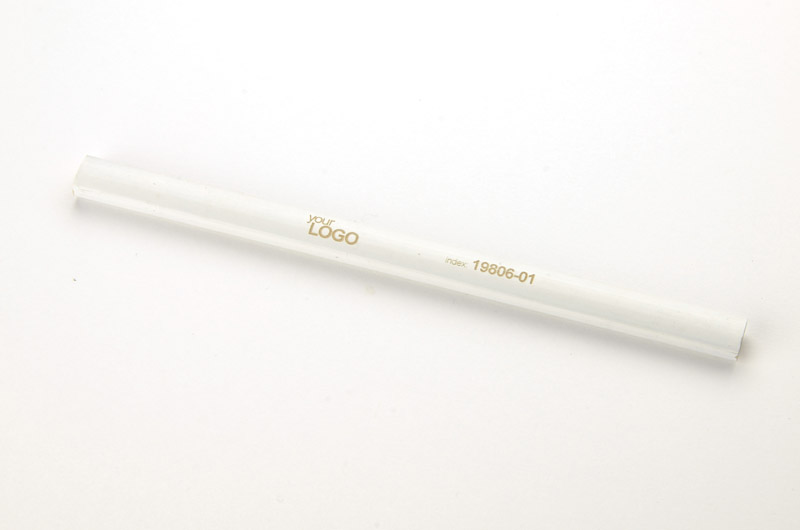 Classical carpenter pencil made of wood. The hardness of pencil: F. Logo might be engraved or imprinted on the surface of the pencil.