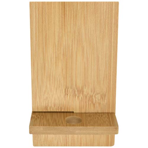 The Ceibo detachable phone stand is crafted from responsibly sourced bamboo. The stand features a convenient recess for a cable connector, ensuring easy charging while keeping the device securely in place.