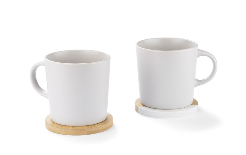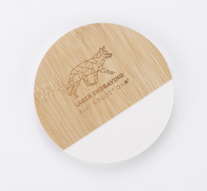 A set of two mug coasters made of a combination of bamboo and artificial marble. The material is durable and resistant to damage. Cosaters look elegant and will certainly fit into many interiors. Packed in a kraft box.