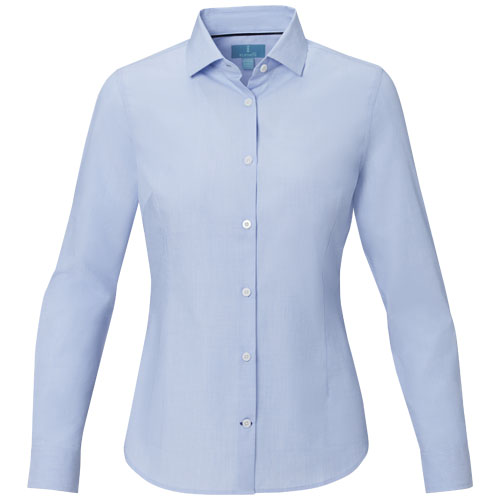 The Cuprite long sleeve women’s organic shirt – a sustainable and stylish choice. Made from organic cotton poplin, this shirt combines ethical manufacturing with exceptional comfort. It features a semi-spread collar that offers a more relaxed and versatile look. The contrast-coloured stitching on the sleeve placket and bottom buttonhole placket adds a subtle pop of style. This shirt is designed with a fitted shape for a feminine look.