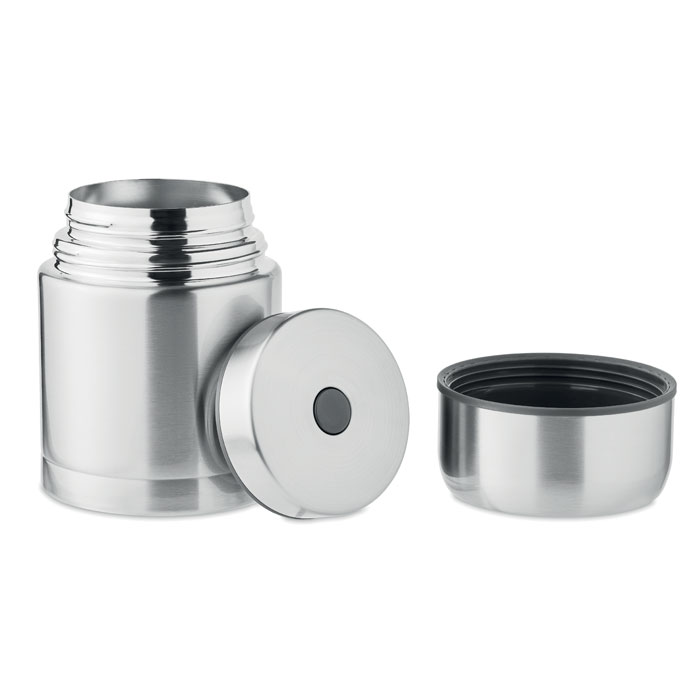 Double wall Stainless Steel insulated storage jar with a screw top. Capacity: 800 ml.