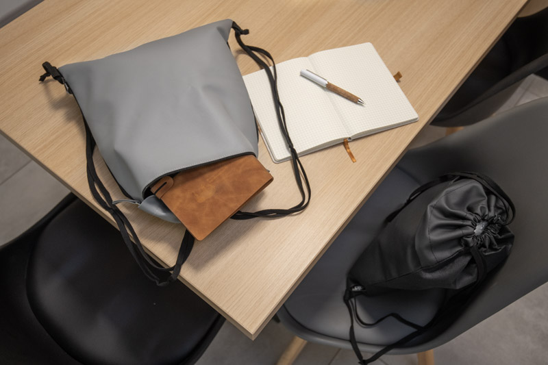 The BASKO bag-backpack, made of durable 600D material, is a practical and robust model for everyday use. It has an external zipped pocket, ideal for small items that need quick access. The drawstring closure system allows for quick opening and wearing on the back. The textured fabric gives it an interesting look, while a different, smooth material has been used on the back side for greater comfort. The RPET label highlights the use of recycled raw materials. The bag can be branded with your logo, creating a practical and modern promotional gadget.