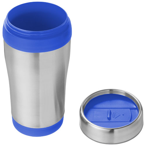 Whether for drinking a morning coffee when travelling or enjoying a nice cup of tea at the office, the Elwood tumbler offers the solution. The tumbler’s insulated double-wall keeps drinks cold or hot for a long time. Because of the twist-on thumb-slide lid beverages are easy to drink. The combination of stainless steel and plastic makes the tumbler very strong, resistant to corrosion and easy to clean. Volume capacity is 410 ml.
