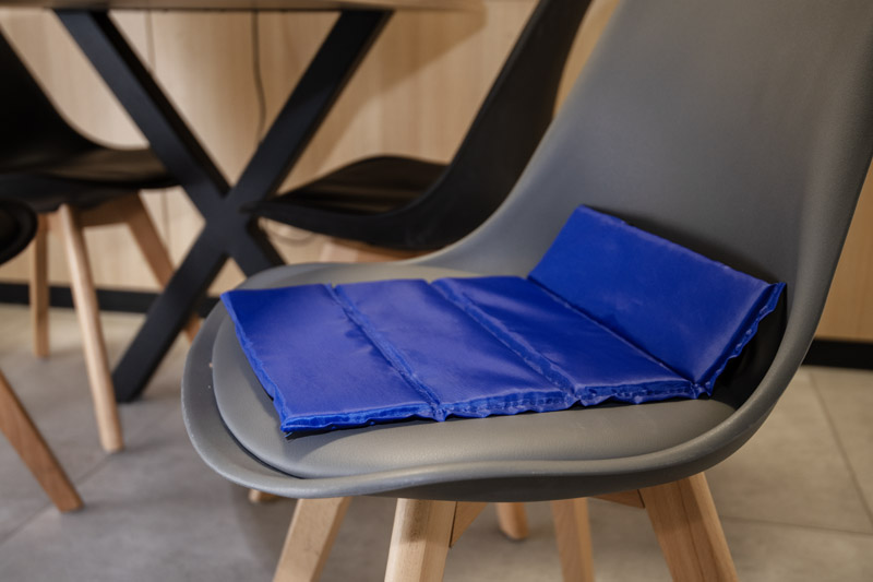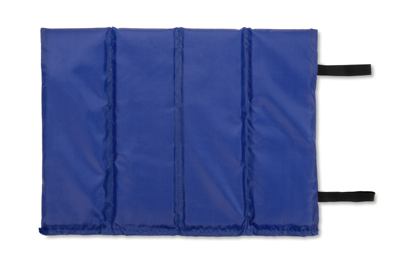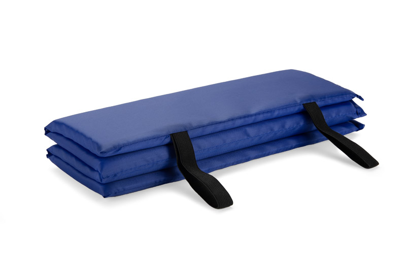 TREKPAD folding seat mat, designed for trekking, camping and outdoor activities. Protects against cold and damp during breaks in the field. Very light (60 g) and compact – clips on with elastic straps when folded. Made of foam with PE cover. A practical promotional gadget for outdoor enthusiasts.