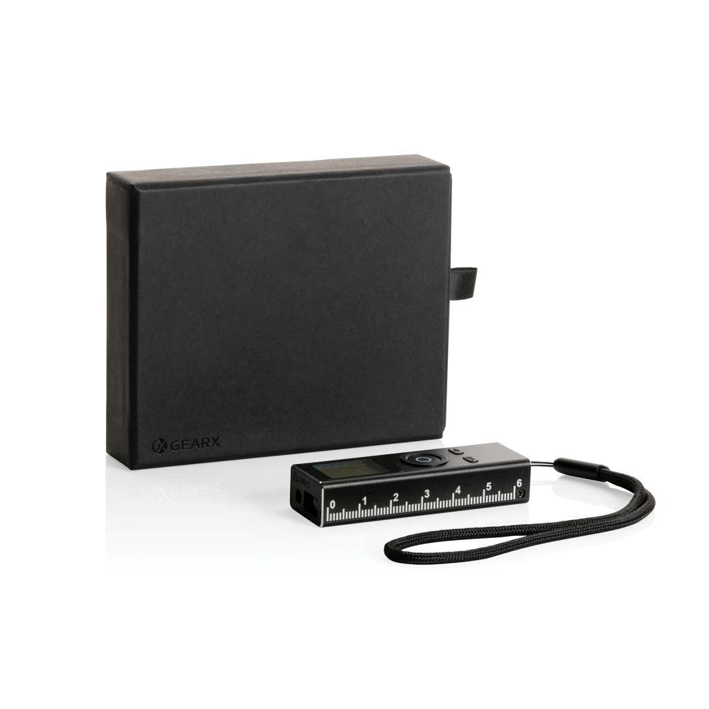 Functionality, materials and design all come together in this re-chargeable 30 metre laser measure made with RCS certified recycled aluminium. Total recycled content: 22% based on total item weight. RCS certification ensures a completely certified supply chain of the recycled materials. The laser measure uses a re-chargeable A-grade 250 mah battery so no need to replace the batteries. Simply re-charge via your USB socket and the included RCS certified recycled type C cable. Class 2 laser. Response time 0.1 second. Measuring system can be adjusted to metres/inches/feet. Laser colour: red. With sound reminder when measuring is finalised. Type-C in, 5V/1A. 4 modes: distance, square area, volume and pythagoras (corners)