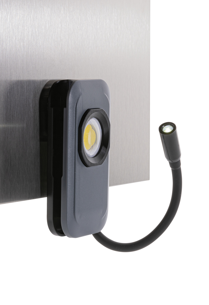 RCS certified recycled ABS plastic. Total recycled content: 36% based total item weight. RCS certification ensures a completely certified supply chain of the recycled materials. The work light uses a re-chargeable A-grade 1000 mah lithium battery so no need to replace the batteries. Simply re-charge via your USB socket. The work light comes with 260 lumen COB light and extendable 80 lumen LED light. With 3 modes: LED, COB and COB 50%. With magnet on the back. With type C port for re-charging. Operating time on one charge: 3 hours.