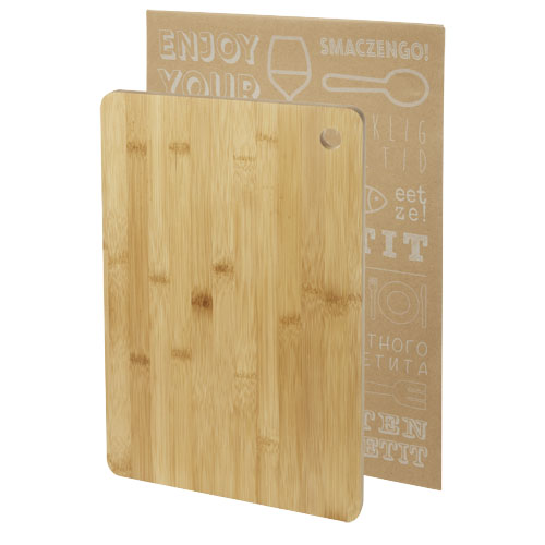 Cutting board made of bamboo that is sourced and produced following sustainable standards. The board can also be used for serving tapas.