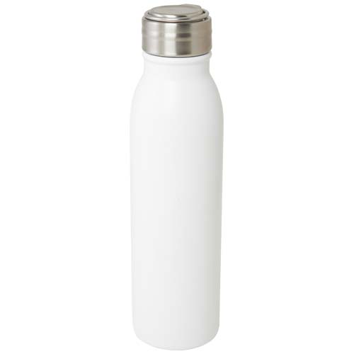 RCS certified stainless steel, single-walled water bottle with a screw-on, spill-resistant lid and a durable, zinc-alloy carry-loop. BPA free, tested and approved under German Food Safe Legislation (LFGB). Tested and approved for phthalates content according to REACH regulations. Fits most standard car cup holders. Volume capacity is 720 ml. Hand wash recommended. Presented in a recycled cardboard gift box.
