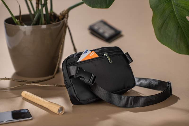 The KIMI hip bag is a versatile pouch combining simple design with practical solutions. The main zipped compartment has space for your essentials, while an additional pocket on the back – on the body side – ensures safe storage of documents or your phone. The adjustable strap allows it to be worn either on the hips or slanted over the shoulder. Suitable for both men and women, it is suitable for travel, work and everyday use. Product available with branding.