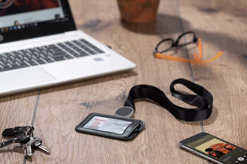 The BINO ID badge case is a gadget that will provide you with the convenience of using any ID badge or access card. Thanks to the 35 cm long retractable lanyard, you won’t have to bend down to the reader or show your pass. The identifier is suspended on a wide, pleasant to the touch ribbon, 86 cm long, with the possibility of disconnecting the ends and adjusting the length with a clip at the end of the ribbon.