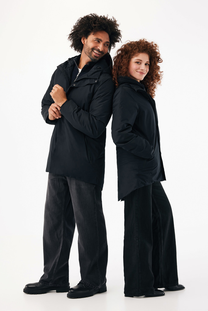 Unisex padded waterproof parka, made from 100% recycled polyester. The jacket is 3.000 mm waterproof, breathable and wind resistant. It has all features of a classic parka: longer back length, back slit, 2-way CF reversed zipper, covered by an extra front placket with four hidden snaps, clean sleeve cuffs with an extra inside half cuff, hood with stoppers at inside collar, horizontal deco seams. It is padded with 100% recycled polyester sheets and is lined with fine taffeta. On the inside there is a hidden zip at bottom hem and left wearer’s chest for easy decoration. Full garment is stitched with recycled polyester sewing thread. At back neck there is a tear-off size label with an iqoniq craft hangtag, care label at the left inside side seam. The use of genuine recycled fabric material and environmental impact claims are guaranteed, by using the AWARE™ disruptive physical tracer and blockchain technology. By scanning the QR code, you will gain access to a dedicated digital passport.