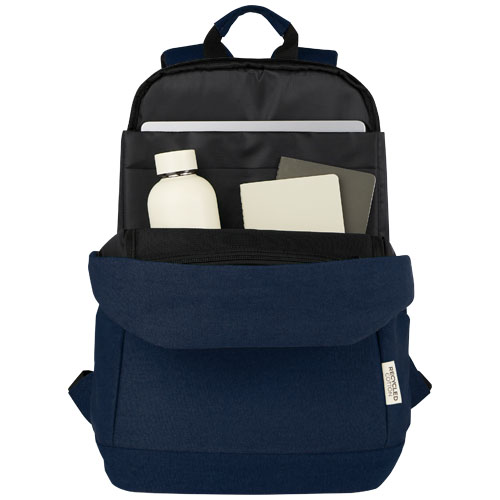 Composed with GRS recycled canvas and GRS RPET lining, the Joey anti-theft backpack features a dedicated tablet sleeve along with a 15.6″ padded laptop compartment. The backpack also has a mesh pocket and organisational pockets inside to keep contents well organised, 2 side water pockets, one zippered front pocket, and a hidden pocket on the back for easy and safe access on the go. The decorative metal plate can make a logo shine through its subtle and matt finish.