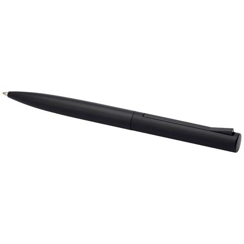 Ballpoint pen with the upper barrel made of recycled plastic, and the lower part is made of recycled aluminium. The clip is made of iron. Ink colour: Black. Writing length: 1000 metres. Nib size: 1.0 mm.
