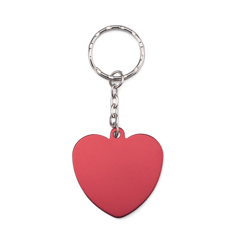 A heart-shaped metal keychain in red colour is a great way to express your feelings. Hung on a chain in silver color.