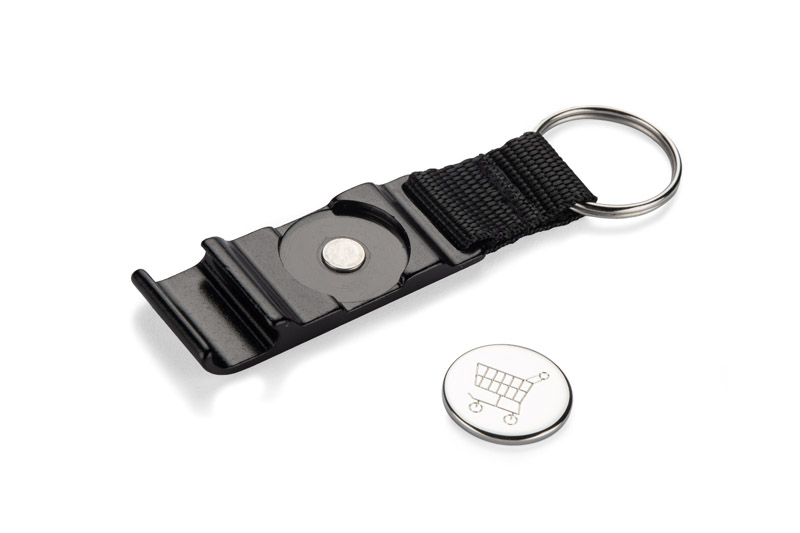 The JOGO keychain is a practical promotional gadget that combines three functions: a shopping cart token, a bottle opener, and a stylish keychain. Made of durable materials, it is perfect for everyday use. Thanks to its compact size and customization options, it serves as an excellent carrier for your company’s logo.