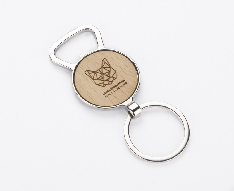 MILO combines the function of a keychain and a bottle opener. It is a functional gadget for everyday use. Made of metal and wood. Packed in a brown envelope.
