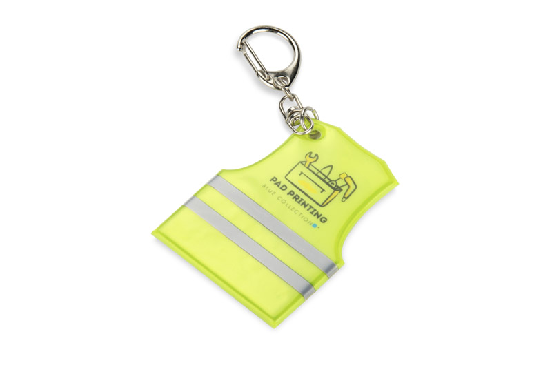 The REFLO vest-shaped key ring is a practical and distinctive advertising gadget. It is made of material with reflective elements. Placed on a metal ring with an additional swivel carabiner, it can be easily attached to keys, bags or rucksacks. Thanks to the possibility of labelling, the key ring becomes a utility advertising medium that will prove useful in safety-related campaigns.