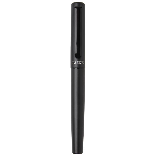 Fountain pen with a recycled aluminium barrel with matte black coating and a black recycled aluminium grip. Aluminium is a recyclable material and by choosing this pen, you can support more sustainable practices and give new life to discarded aluminium materials. This stylish fountain pen serves as a practical and more sustainable option for individuals and organisations looking for environmentally friendly writing instruments. Delivered with a black cartridge and a black gift box. Box size: 16.8 x 4.2 x 2.5 cm.