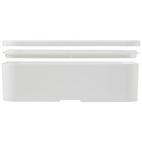 The ideal lunch box for school, work or leisure! The MIYO lunch box offers a 700 ml capacity, making it ideal for sandwiches, salads and much more. The lid is held in place with a band made from recycled PET. Please contact us for other colour combinations and extra accessories, such as a spork or inner compartment. Microwave safe, dishwasher safe, BPA-free and fully recyclable. Made in the UK and packed in a recycled PE plastic bag. Fully customise your MIYO by adding individual recipient names to the lid – please contact us for more details.