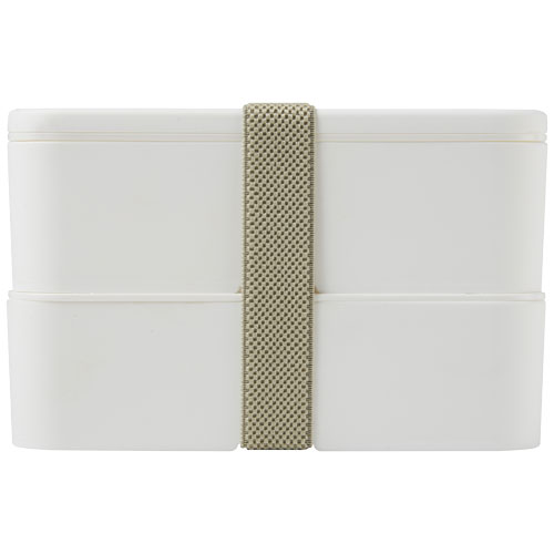 Go large with this MIYO double layer lunch box! With two 700 ml capacity bases, there’s plenty of room for sandwiches, fruit, salad and much more, and it’s all held in place with a band made from recycled PET. Other colour combinations plus accessories are available, such as a spork or inner compartment, please contact us for details. Microwave safe, dishwasher safe, BPA-free and fully recyclable. Made in the UK and packed in a recycled PE plastic bag. Fully customise your MIYO by adding individual recipient names to the lid – please contact us for more details. Volume capacity: 700+700 ml.