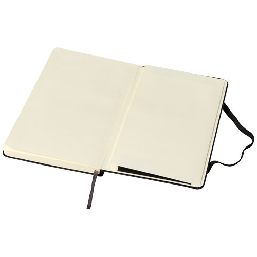 The Moleskine Classic hard cover notebook is now available in a medium size. It has the iconic rounded corners, elasticated closure and ribbon book marker. Expandable internal pocket to back cover. Contains 208 ivory-coloured ruled pages.
