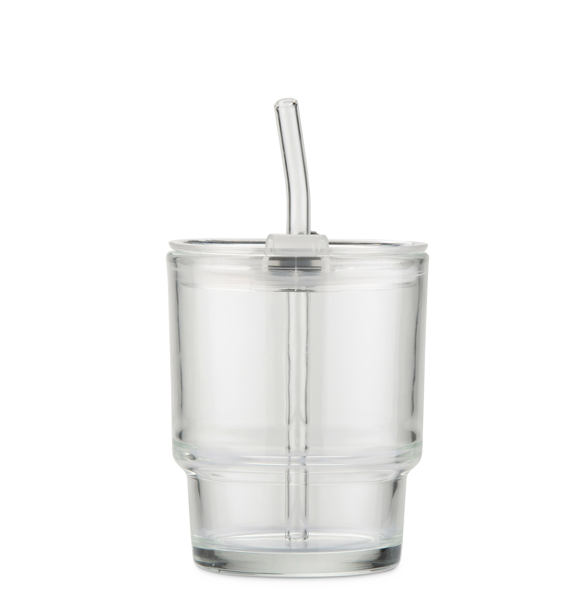 The 350 ml NOA cup is made of glass and comes with a matching glass straw and lid. The lid with a hole makes it possible to drink through the straw or, after removing it, to use it like a classic glass. The clear form and minimalist design give the cup a modern and universal appearance.
