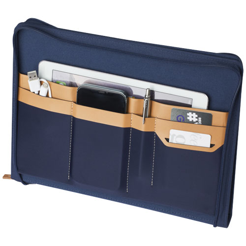 The RCS certified Nomumi portfolio is partly made from recycled post-consumer polyester, making this portfolio a more sustainable choice since it helps to reduce the use of virgin raw material. Featuring a zipper closure, pen loop, accordion pocket, and 20 white lined sheets with 70 g/m2 recycled paper from sustainable sources. The pen and other accessories appearing on the photos are not included with this item.