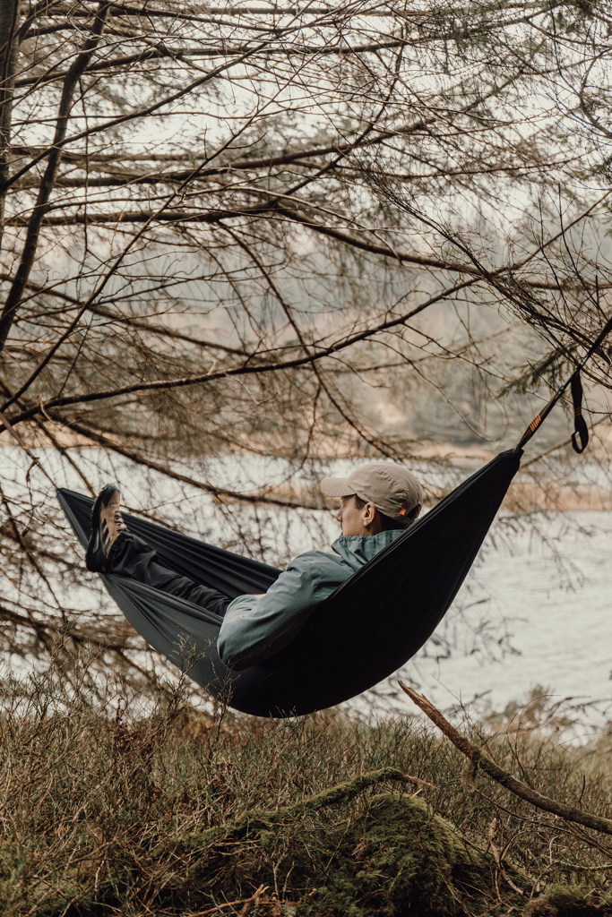 Meet Nordic Drift’s Outdoor Hammock. A lightweight, compact, and travel-friendly companion for all your adventures. Crafted from 44% certified recycled nylon (GRS), it conveniently packs into a smart integrated pouch that makes it easy to carry, store, and take anywhere. Featuring a spacious 140×270cm design and a weight capacity of up to 180 kg (396 lbs), it’s perfect for sharing or relaxing on your own. The integrated pouch neatly stores the hammock together with sewn-in carabiner hooks and two durable fastening straps. When unfolded, it also doubles as a convenient side pocket, perfect for keeping small essentials within reach while you relax. Instruction manual included. All Nordic Drift products are tested for quality. Because we strongly believe in the performance and durability of our gear, every item is backed by a 5-year warranty on manufacturing defects.