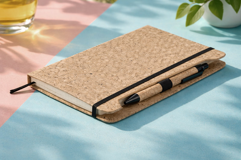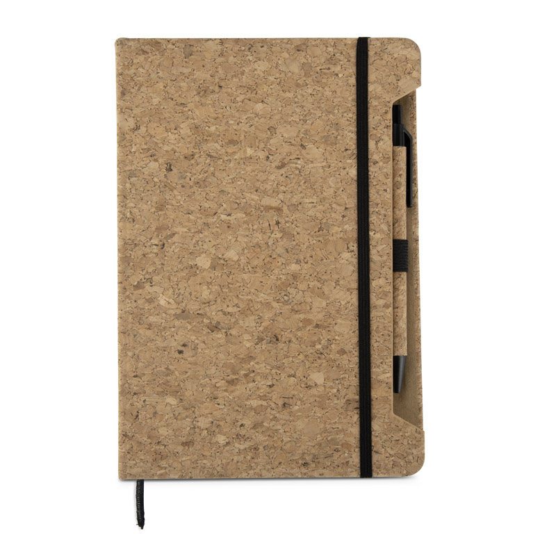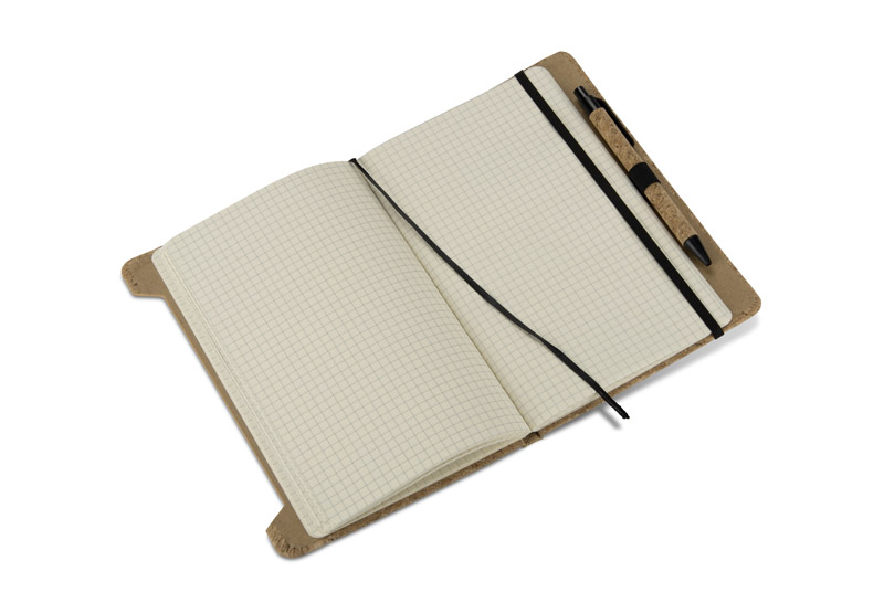 The SKRIP A5 notebook attracts attention with its cover made of natural cork with a clear, organic texture. It comes with a pen partly made of the same material, which creates a coherent and striking whole. Inside, there are 80 white checkered pages (70 gsm weight) and the whole thing is secured with an elastic band. The notebook is sewn for comfort when using and opening flat. Functional and stylish – perfect for promotional kits or as an individual promotional gift.