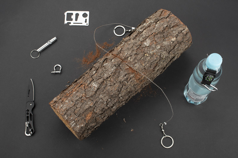 The BALE outdoor set is a must-have for survival enthusiasts. In one set you will find everything that will work well during many trips. The set consists of six elements: a bottle holder with a carabiner and a compass, a manual chain saw, a folding knife, a whistle, a sailing shackle and a survival card with as many as 11 functions: can and bottle opener, screwdriver, 4 cm ruler, four-position key for various sizes of nuts or bolts, butterfly opener, double row saw, map indicator, two-position wrench and lanyard or keyring hole. The set is packed in a black case.