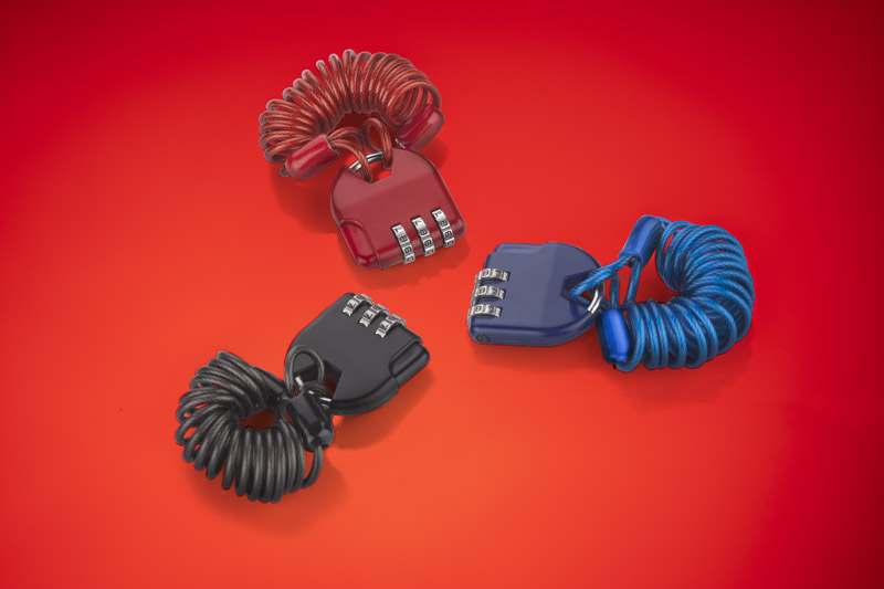 ADO is a highly practical padlock which will be great for closing a changing room locker, a suitcase or a bag. The attached metal spring rope will enable to use the padlock to secure your bike or kick scooter. The padlock made of metal. It is opened using a three-digit code set by the user (the default “000” code can be changed by pressing a button on the padlock side and resetting the digit discs to a new code).