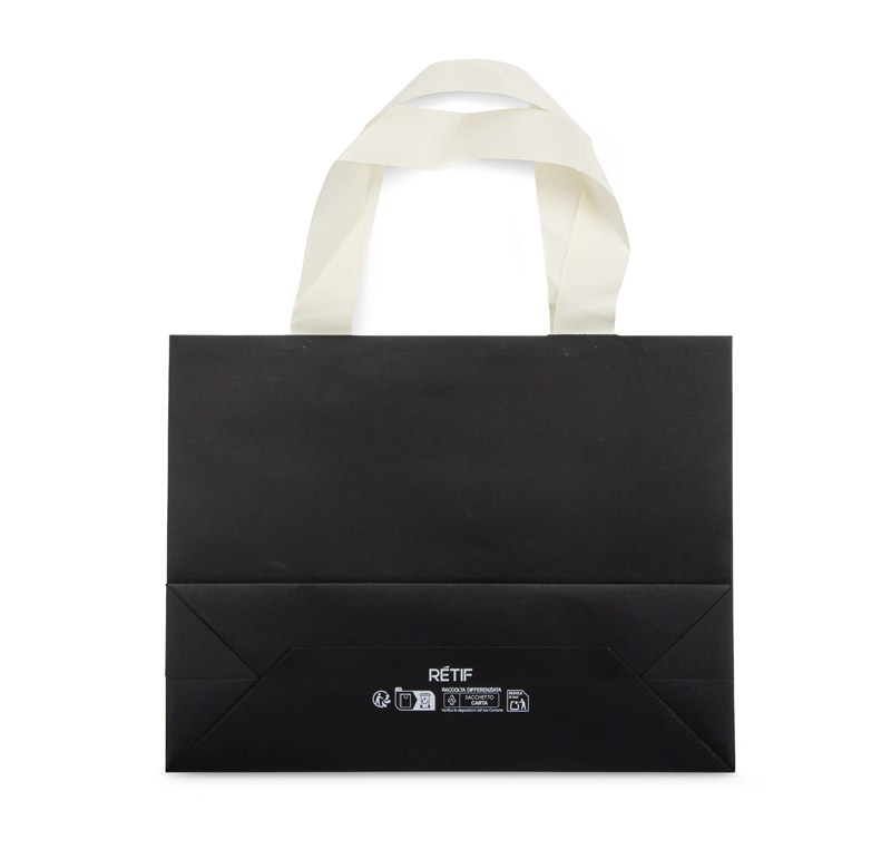 The DUNA large size paper bag is an elegant and sturdy packaging ideal for larger gift sets or premium products. Made of thick, stiff paper, it retains its shape even with heavier contents. The wide fabric ribbon handles ensure comfortable handling and emphasise its luxurious character. The simple, classic design makes it ideal for corporate events, galas or gift campaigns. The bag is available with logo branding.