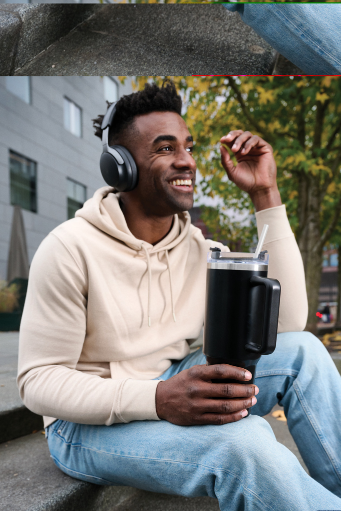 Meet Peakflow, the ultimate 1200ml tumbler designed for those who need a little extra. Its comfort-grip handle and slim base make it easy to carry and fit into most cup holders, keeping you hydrated on the go. Outside made from durable recycled stainless steel, Peakflow’s double-walled, vacuum-insulated body keeps drinks at the perfect temperature. It features a spill-proof lid with a dual function for sipping or using the included recycled plastic straw. RCS-certified, with 29% recycled content, and BPA-free. Perfectly practical and lower impact, we recommend handwashing. Bulk packed.
