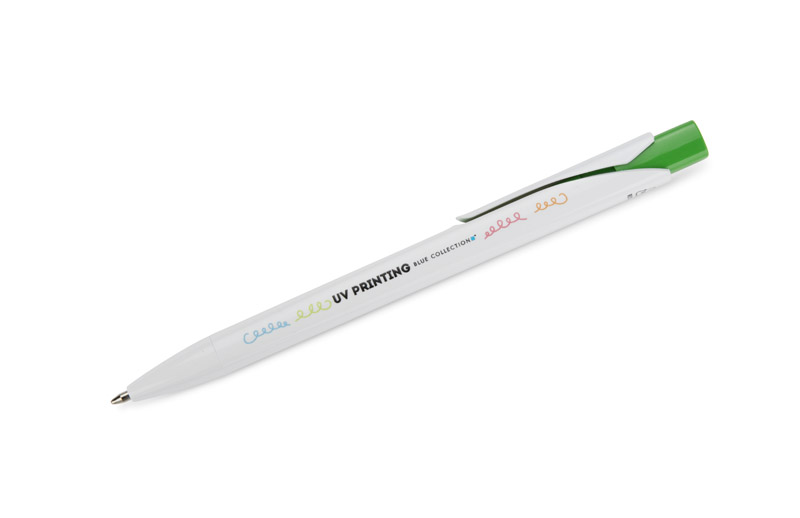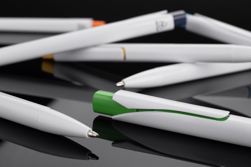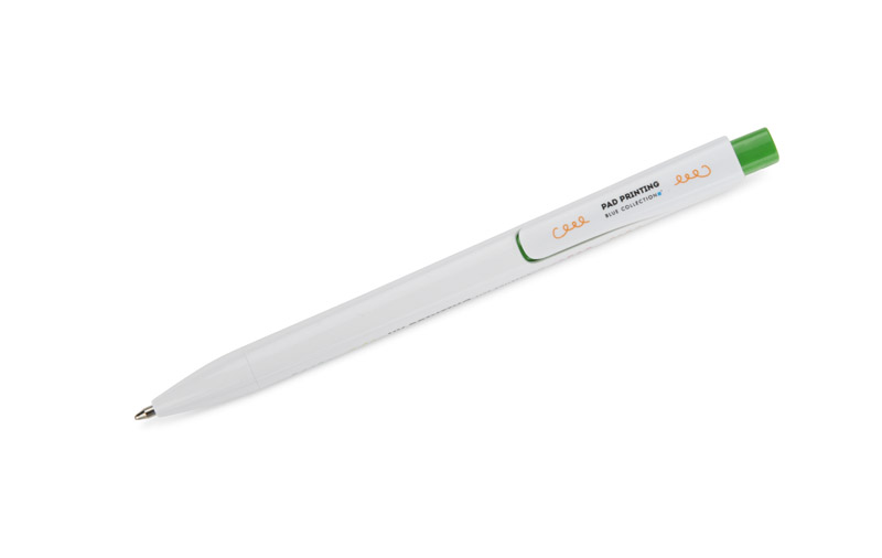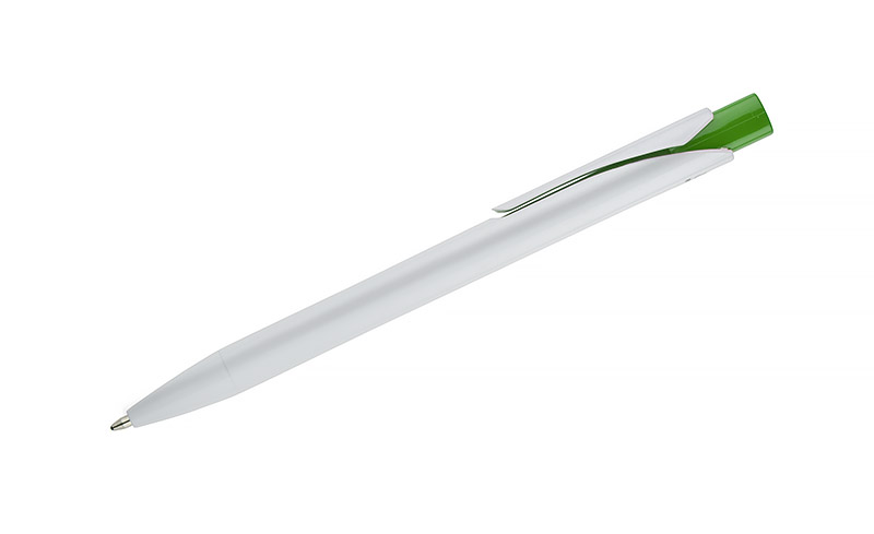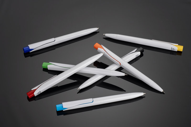 The KLIBO ballpoint pen is made of rABS plastic in a classic white colour with a lacquered finish. It is distinguished by a square, coloured button and a slim, flat clip that holds documents and notebooks securely. The automatic mechanism ensures comfortable use, and the G2 type refill with a writing thickness of 1.0 mm guarantees smooth and even writing. The lightweight construction and modern form make KLIBO a practical promotional gadget for everyday use.