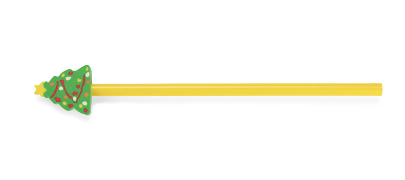 The CHRISTMAS pencil is a festive gift in yellow, finished with an eraser in the shape of a Christmas tree. The cheerful, colourful accent gives it a seasonal touch and captures the attention of little ones. Ideal as an addition to Santa sets, advent calendars or as a small promotional gadget during the festive season.