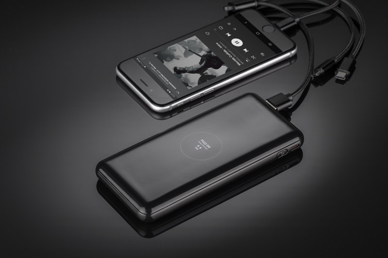 FUERTE 15W is a power bank that has many modern functions. The most important of these is the Power Delivery (PD) fast charging function. This is a fast charging standard that allows you to transfer high power through the USB-C connector. The technology is characterized by an increased power level, in the case of FUERTE it is as much as 15W. The biggest advantage of the Power Delivery standard is the ability to intelligently adjust the charging power to the device being charged. In addition, the power bank has a built-in wireless charger with a maximum power of 15W, a digital display hidden under an elegant mirror housing and a flashlight. The USB-C port is bi-directional – it is both an input and an output, which means that – together with the two USB-A outputs – it is possible to charge up to three devices at the same time. The charging cable is included.