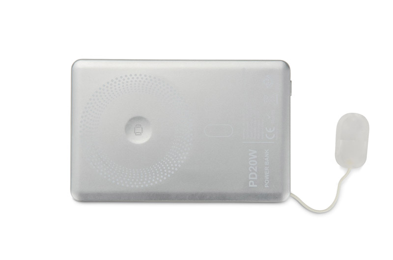 With a capacity of 5,000 mAh and 20 watts of power, the ZYNTRA power bank is a compact device that combines several modern functions. It supports fast wired and wireless charging, including inductive charging of your watch. Thanks to MagSafe technology, it holds the phone stably and the built-in stand also acts as a holder, making it easy to use the device while charging. Equipped with a USB-C port, it enables fast powering of various smartphone models. As an added bonus, there is a practical lanyard integrated into the USB-C – USB-C cable, making it easy to carry and allowing you to charge your devices anywhere. ZYNTRA is a multifunctional advertising gadget with branding capabilities that is perfect for work and travel.